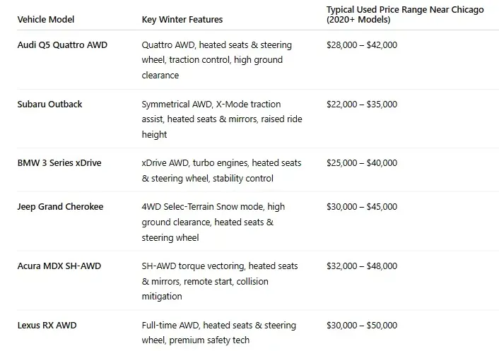 Best Used Cars for Snow Near Chicago | Your Choice Autos